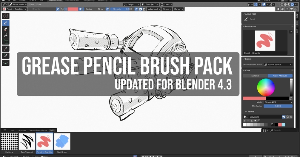 Grease Pencil Brush Pack - updated for Blender 4.3
